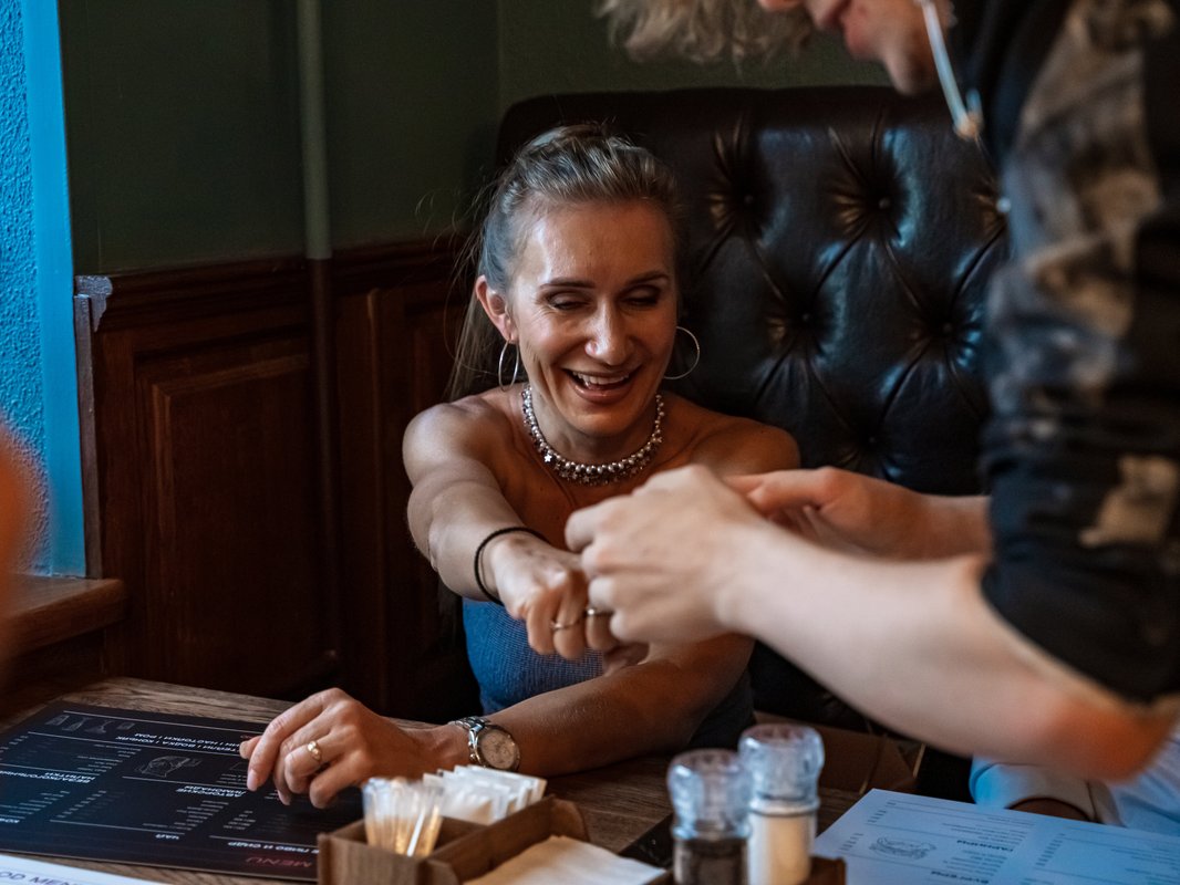 Были здесь первый раз. Очень понравилось! И уютно, и персонал приветливый и внимательный, и блюда вкусные и красиво оформлены. И даже в лотерею мы с подругой выиграли пиво и гренки в следующий раз.