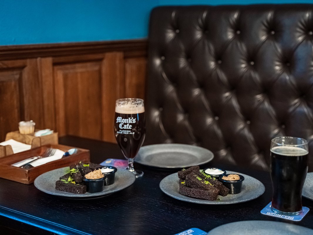Атмосфера в баре приятная, уютная, для вечернего отдыха - самое то. Я попробовал салат с ростбифом, который оказался на высоте: мясо идеально приготовлено, а сочетание с зеленью и соусом получилось очень сбалансированным и вкусным. Сырные палочки с ягодным соусом тоже не разочаровали - хрустящие и аппетитные, а соус добавляет интересную кислинку, которая отлично раскрывает вкус сыра. К пиву я выбрал эль Lefebvre Floreffe Triple, который подошел идеально - насыщенный, с приятной горечью и фруктовыми нотками. Всё было очень вкусно, и сервис на высоте.